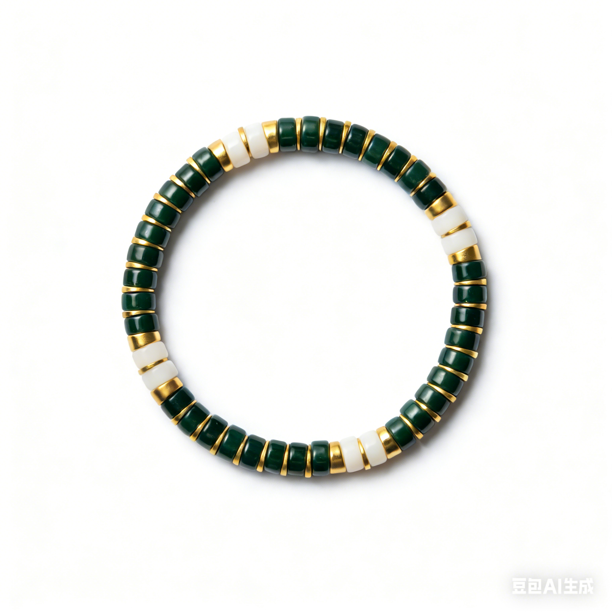 This striking bracelet celebrates Saudi Arabia's iconic colors through carefully selected Colored Glaze beads in deep green and crisp white, anchored by warm gold-tone spacers that add refined sophistication. The flexible stretch cord ensures effortless comfort for everyday wear, making it equally suited to spirited occasions or understated styling that carries cultural significance. A versatile piece that bridges bold statement and refined simplicity.